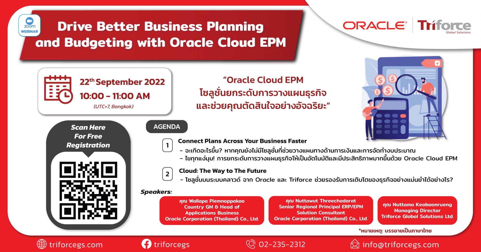– ไขทุกแง่มุม! การยกระดับการวางแผนธุรกิจให้เป็นอัตโนมัติและมีประสิทธิภาพมากขึ้นด้วย Oracle Cloud EPM